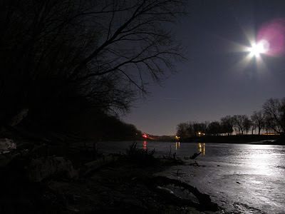 I've been tinkering with my new camera. I think it's grown on me some. I took advantage of the big moon and the frozen river when it was nice out this past weekend. I'm glad I did because now it's too damn cold. I need to get a tripod if I intend to keep taking nighttime photos because the shutter stays open for a long time and i am bad at holding the camera steady and there aren't usually level things to set it on. I can get one for pretty cheap, but I haven't decided if it's worth it yet.